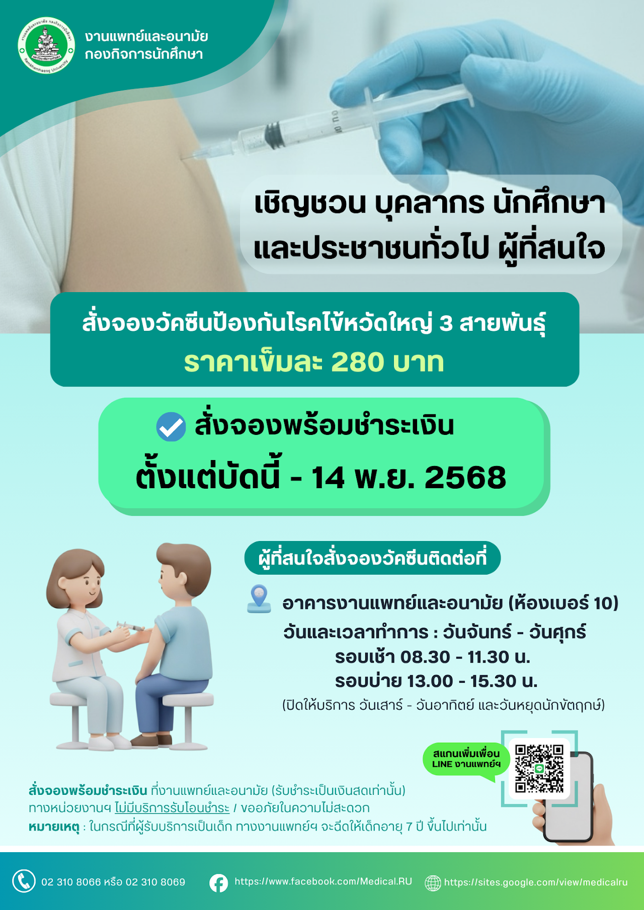 เชิญชวนผู้ที่สนใจ สั่งจองวัคซีนป้องกันโรคไข้หวัดใหญ่